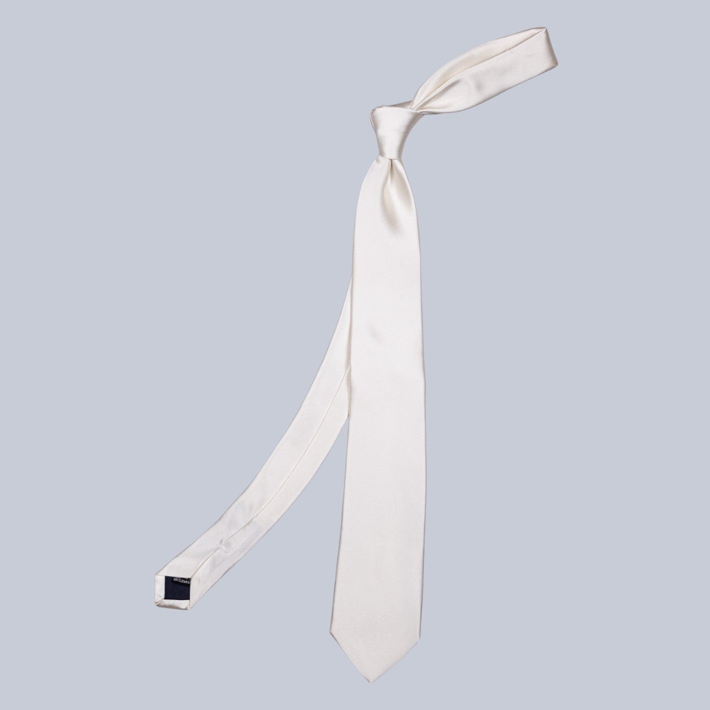 A white silk tie is a symbol of dignity and respect. Traditionally worn for funerals or memorial occasions.