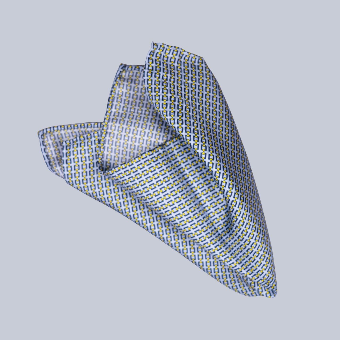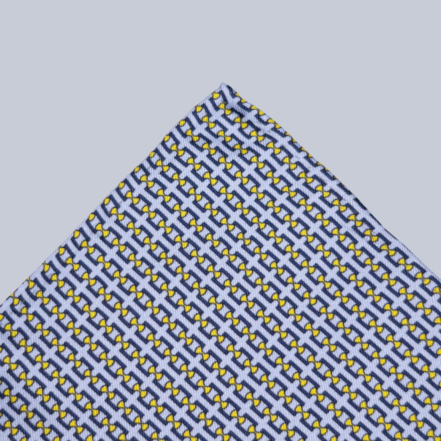 Ice Blue Yellow & Navy Chain Pattern Pocket Square