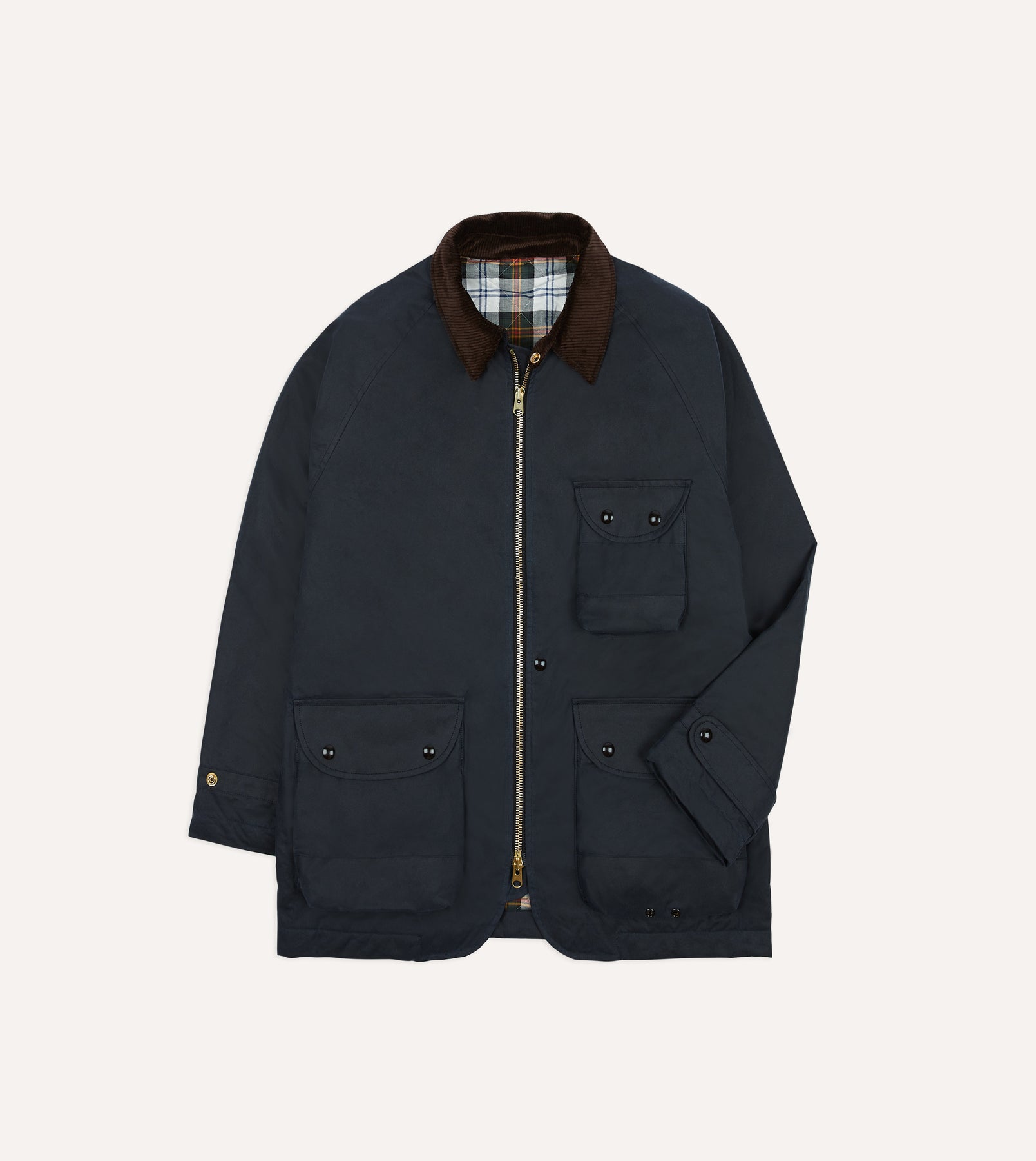 A hearty waxed cotton composition offers unrivalled patination that will only improve with wear, while patch and stud bellows pockets provide ample utility whether strolling in town or stalking in the country.
