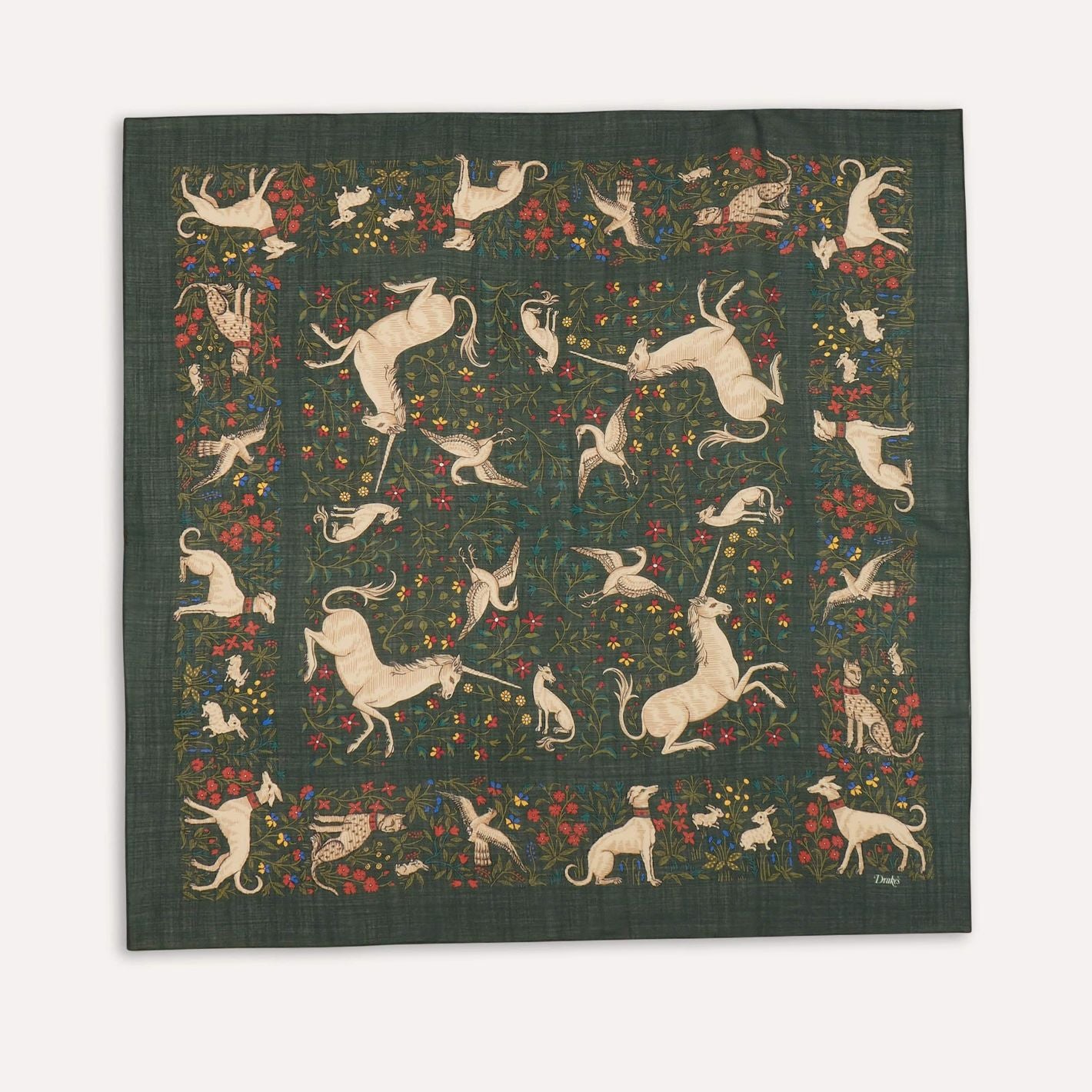Taken from our extensive design archive, this unicorn motif has been vividly applied to a blend of pure wool and silk for a elegant and comfortable defence from a cold snap.