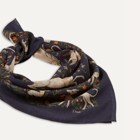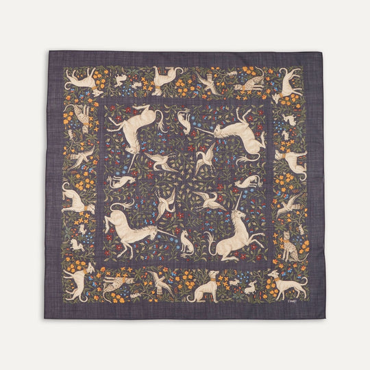 Taken from our extensive design archive, this unicorn motif has been vividly applied to a blend of pure wool and silk for a elegant and comfortable defence from a cold snap.