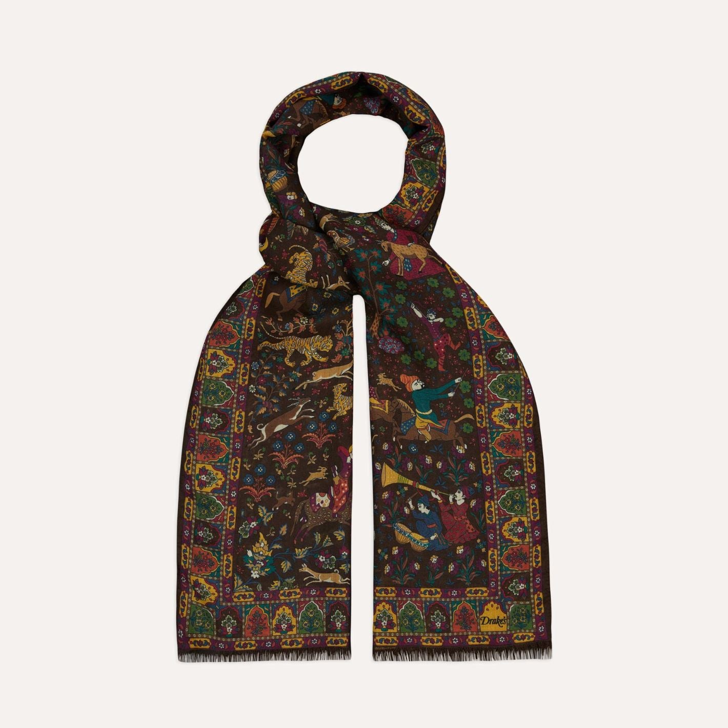 Taken from Drake's extensive design archive, this Mughal garden motif has been vividly applied to a blend of pure wool and silk for an elegant and airy addition to your arsenal.