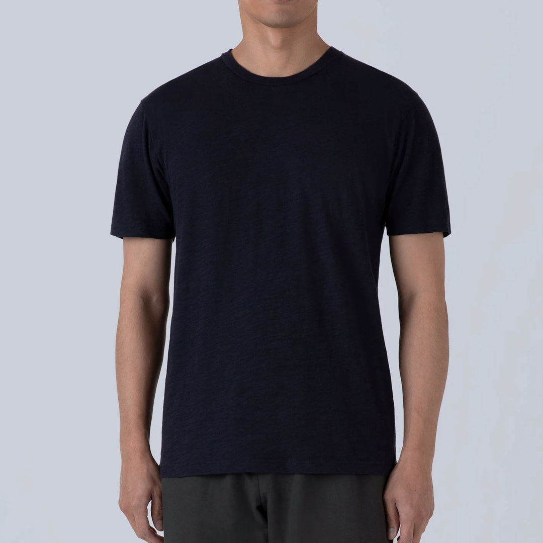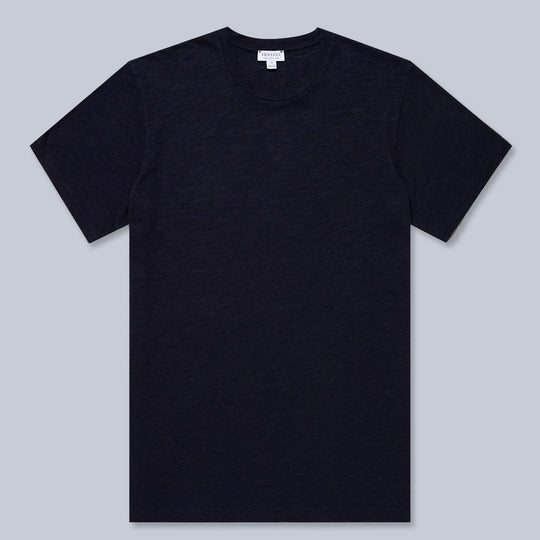 A refined summer T-shirt that combines the soft handle of Pima cotton with the casual look and breathability of linen. The cut and style follow our Riviera T-shirt, which was tailored for Daniel Craig’s James Bond, with a slim fit and bound neckline.