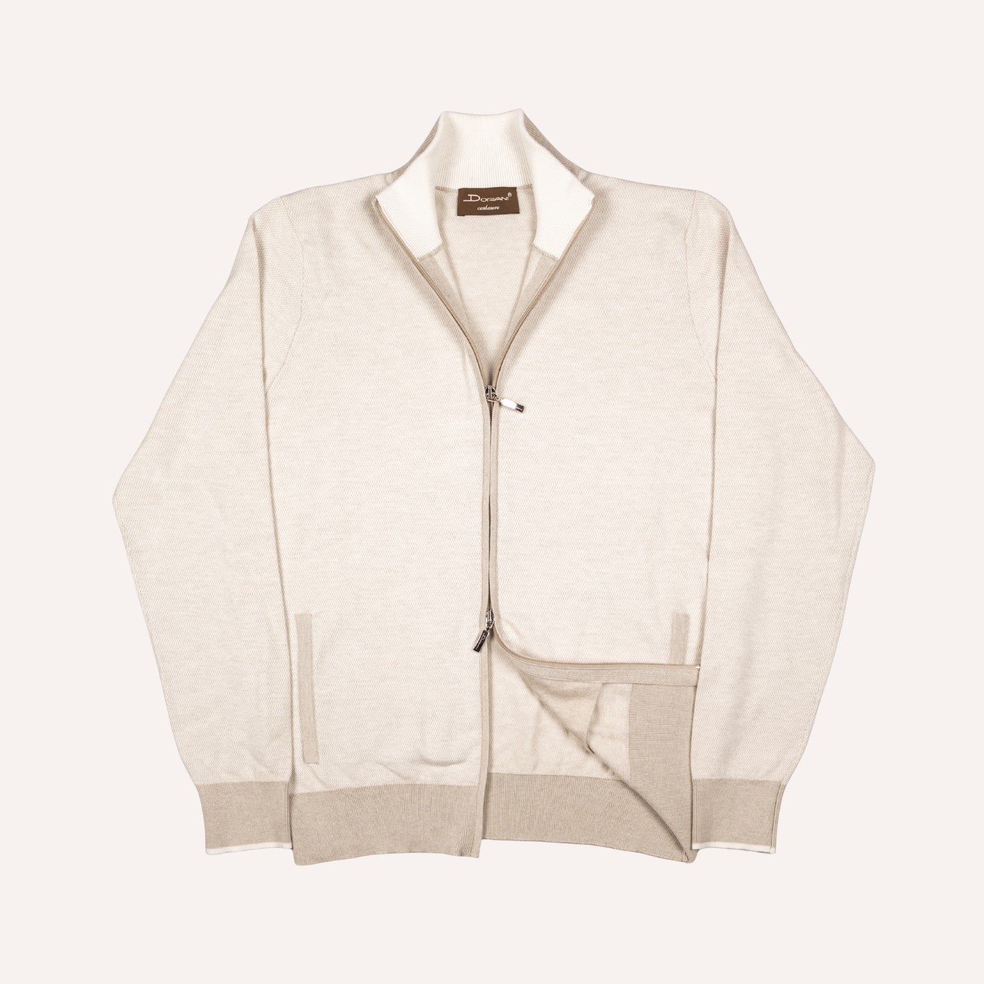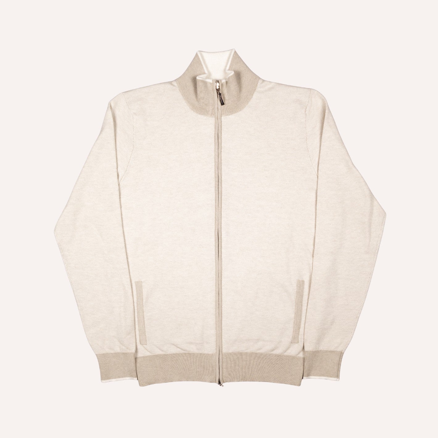 Beige Cotton Cashmere Full Zip Sweater