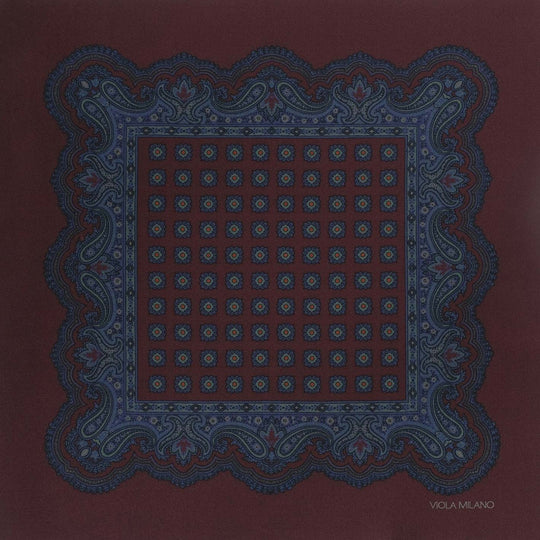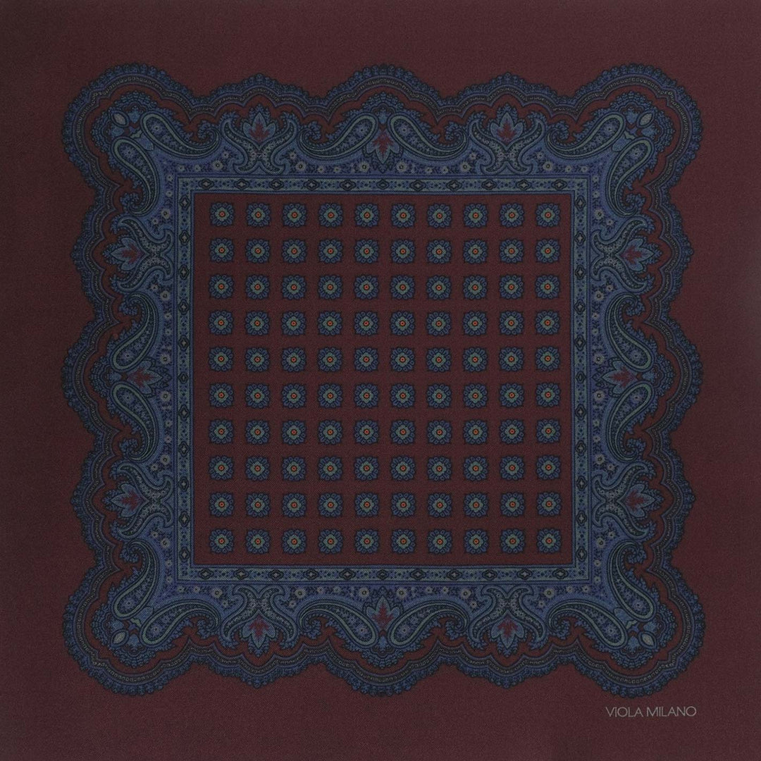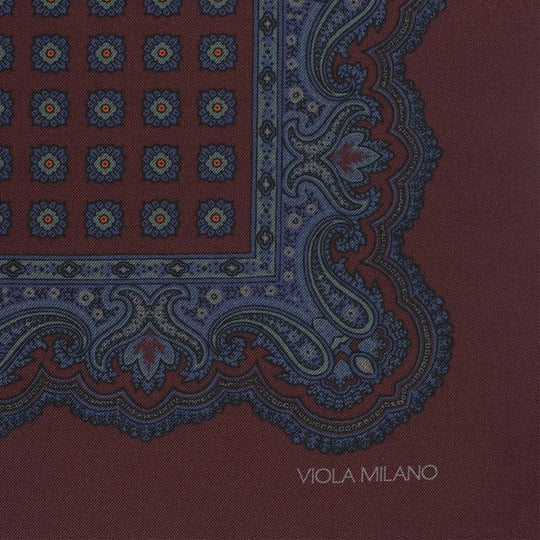 Brown Blue Printed Silk Pocket Square