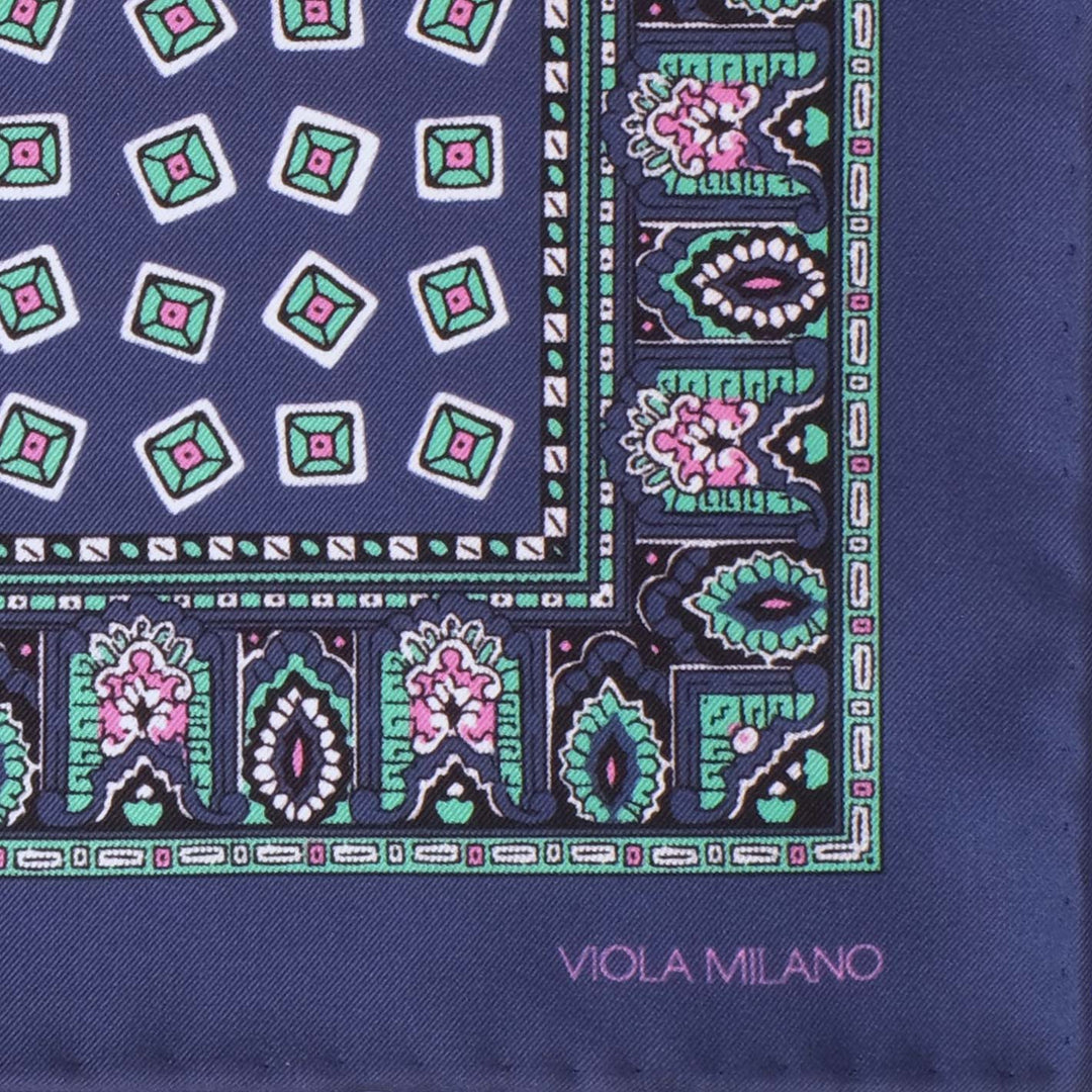 Navy Mint Pink Printed Silk Pocket Square